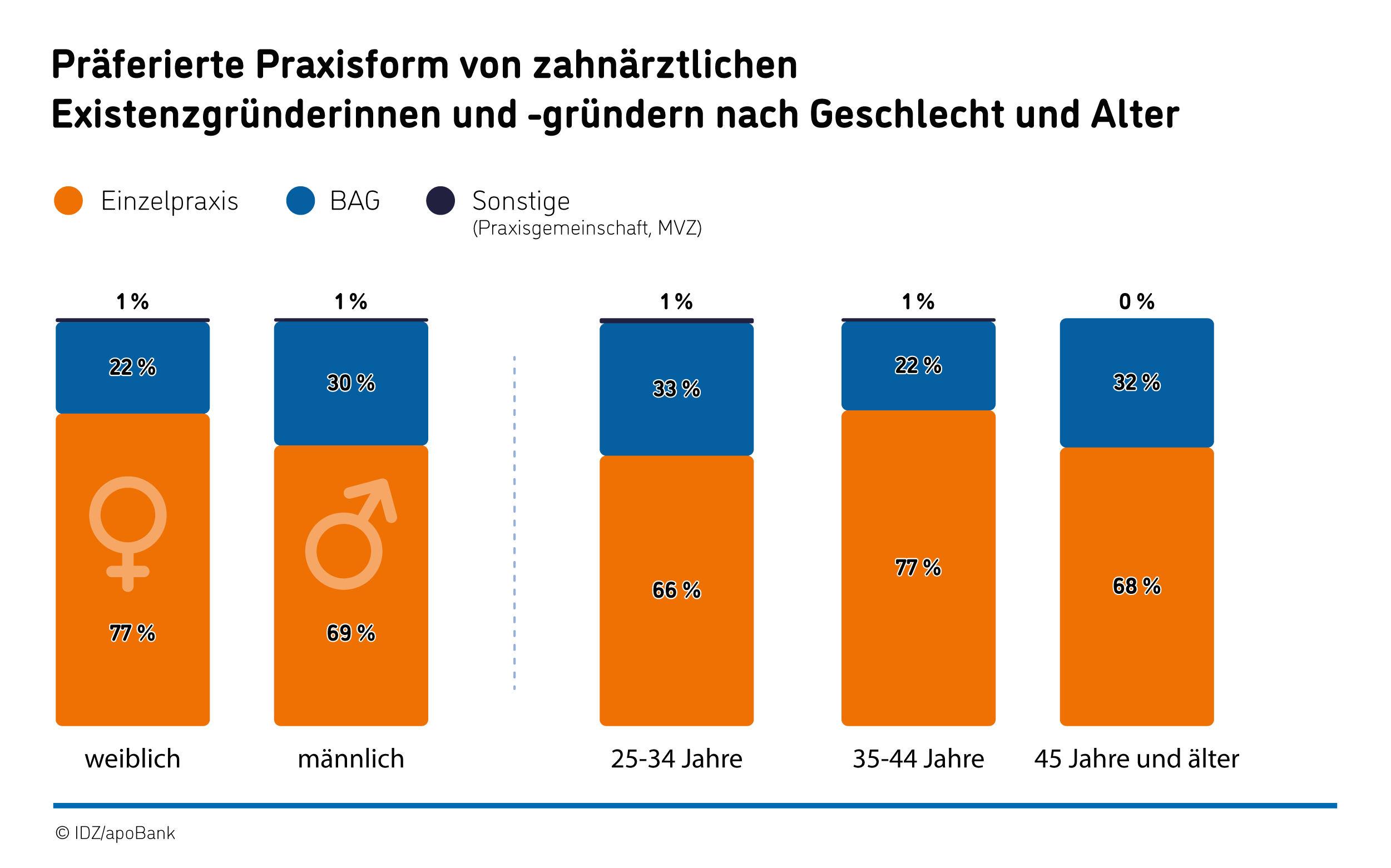 Abbildung 3: Präferierte Praxisform von zahnärztlichen Existenzgründerinnen und -gründern nach Geschlecht und Alter